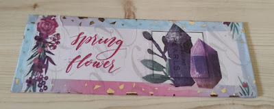 Pak jsem nalepila i nápis Spring flower. Ale spíš proto, že se mi tam hodil font písma, než kvůli něčemu jinému. Ten pás květin, co jsem tam přidala pak nakonec moc jarní není, ne? Ale skvěle ladí s ostatními komponenty.